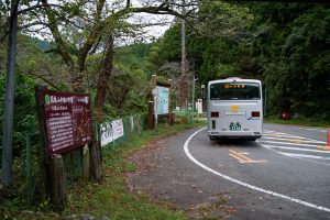 To reach the trailhead, take an ‘Eagle’ (grey-style) bus from the south exit of Ogawamachi Station 小川町駅 on the Tobu Tojo Line. The ride takes about 35 minutes and costs 650 yen. On weekdays, the first bus departs at 6:46 am, and at 7:14 am on weekends. Being the early bird that I am, I caught the first departure, arriving at the Shiraishi-shako bus stop 白石車庫 at 7:21 am—plenty of time to complete the hike and return before the 12:18 bus.