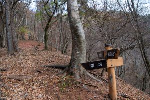 The trail begins with a steady climb through quiet forest, arriving at Dosaka-toge 道坂峠, the junction between Mt. Imakura and Mt. Mishotai. The Dozaka Tunnel runs beneath this pass. From the trailhead the climb is sustained, with Mt. Imakura 今倉山 (1,470 m) reached in about one hour. The summit of Mt. Imakura is surrounded by forest and offers no views.
