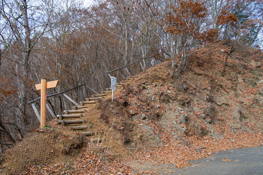 From Tsurushi Station 都留市駅 on the Fujikyuko Line, exit the station and board a bus bound for the Dozaka Tunnel 道坂隧道 (30 minutes, 740 yen). Be aware that on weekends and public holidays there are only two morning departures, at 8:15 and 9:15, and none on weekdays. The bus also does not operate from mid-December to March. Taking the 7:55 am train from Otsuki Station ensures a smooth connection. On a previous weekday hike to Mt. Mishotai, I had to walk to the trailhead along the same road. For those driving, a small carpark is available at the bus stop.
