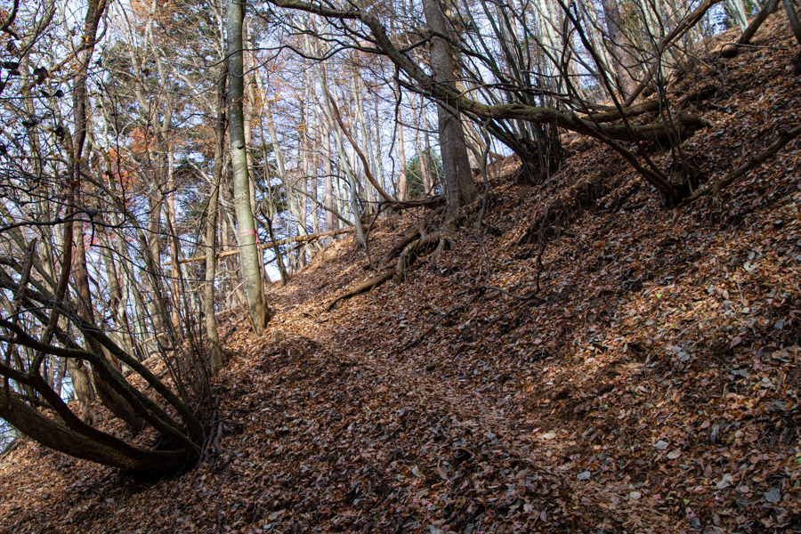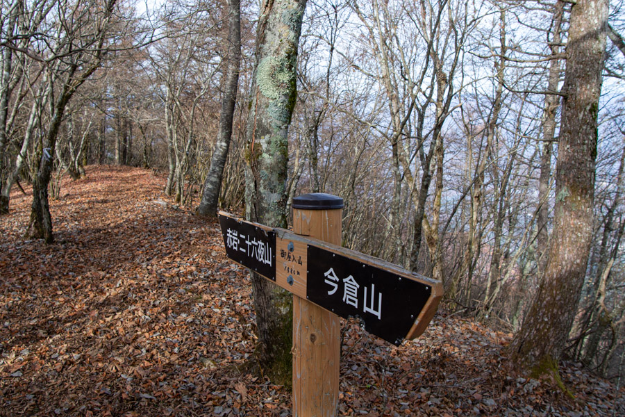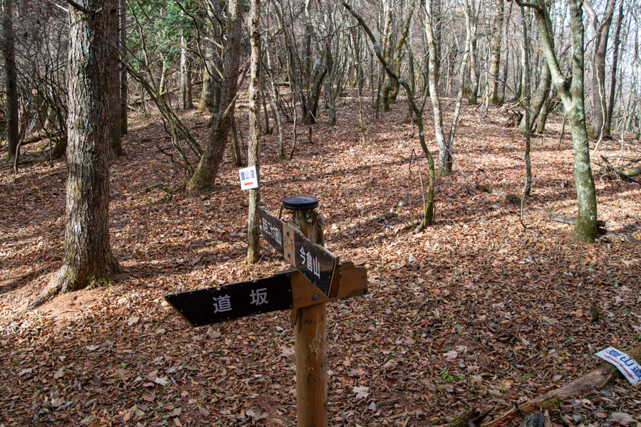 The trail begins with a steady climb through quiet forest, arriving at Dosaka-toge 道坂峠, the junction between Mt. Imakura and Mt. Mishotai. The Dozaka Tunnel runs beneath this pass. From the trailhead the climb is sustained, with Mt. Imakura 今倉山 (1,470 m) reached in about one hour. The summit of Mt. Imakura is surrounded by forest and offers no views.