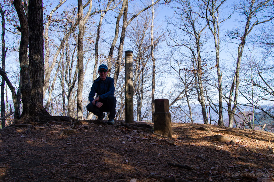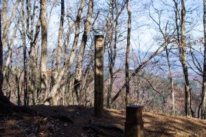 From the trail junction, the summit of Akiyama Nijurokuya-yama 秋山二十六夜山 (972 m) is less than a five-minute walk. As mentioned earlier, however, it is completely enclosed by trees and offers no views. It’s quite possible that when Yamanashi’s 100 Famous Mountains list was compiled back in 1997, the summit was still open. If that’s the case, perhaps it’s time to consider a switcheroo with the far more scenic one in Tsuru City.