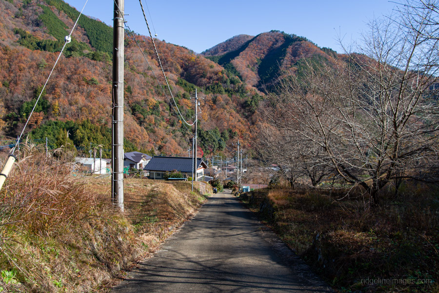 The final section of the hike descends gently through a valley, following the same route I took on my Mt. Kuratake hike years ago. About ten minutes down, you’ll pass a small water source. The scenic Tateno River runs alongside the trail, crossing it several times before the track eventually emerges onto a road that leads back to Yanagawa Station.