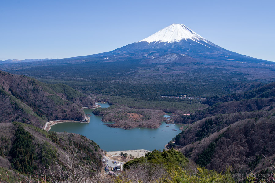 Rising above the calm waters of Lake Shoji – the smallest of the Fuji Five Lakes – Mt. Sanpobun forms part of the Misaka Mountains and ranks among the 100 Famous Mountains of Yamanashi. This point-to-point hike affords excellent views of the lake and surrounding peaks, culminating at Panorama-dai, where the magnificent form of Mount Fuji appears directly opposite, separated only by the vast Aokigahara forest.