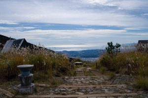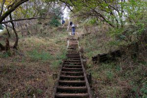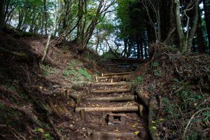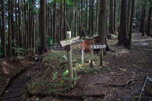 The main reason for starting this hike from Yabitsu Pass ヤビツ峠 is the plentiful bus service from Okura 大倉. Before that, however, you’ll need to tackle the long descent down the Okura Ridge – a 7 km stretch with an elevation drop of about 1,200 metres. This ridge is famously (or infamously) nicknamed Baka One バカ尾根, the “Fool’s Ridge”, for its seemingly endless, monotonous slope. It’s almost entirely made up of stairs – from start to finish.
