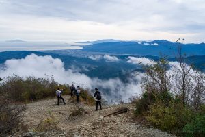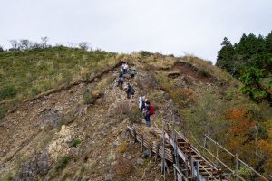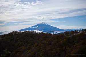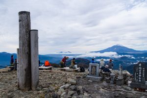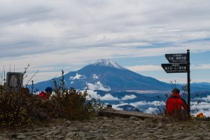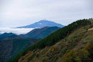 As you gain elevation, Mt. Oyama gradually comes into view behind you, and about an hour after leaving the bus stop, you’ll reach Mt. Ninoto 二ノ塔, the first peak along the main ridge and the first spot where Mt. Fuji makes an appearance. There are benches here, making it a good place to rest and shed a layer. Even better views, however, await at neighbouring Mt. Sannoto 三ノ塔, 1,205 m, about a 10–minute walk from Mt. Ninoto – along yet another stretch of stairway hell. The summit of Mt. Sannoto was so clear that day I could make out not only Tokyo Skytree but also Izu Oshima and even the faint silhouette of tiny Toshima.