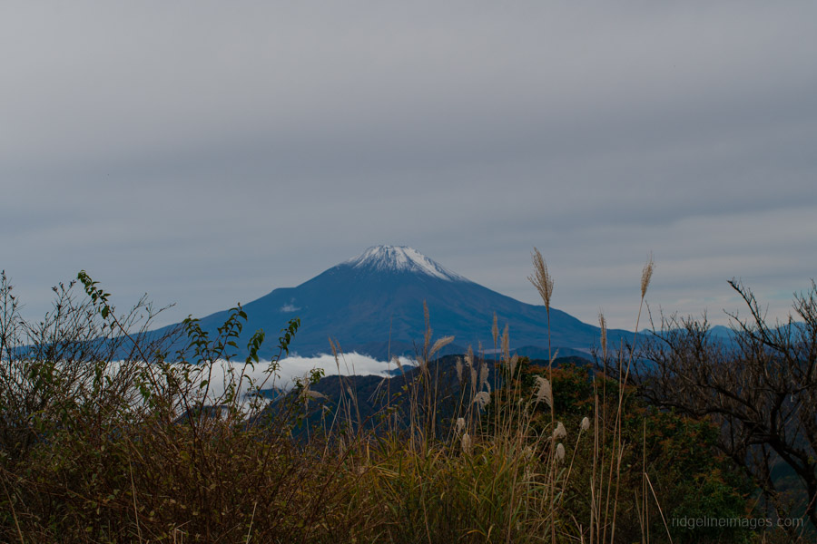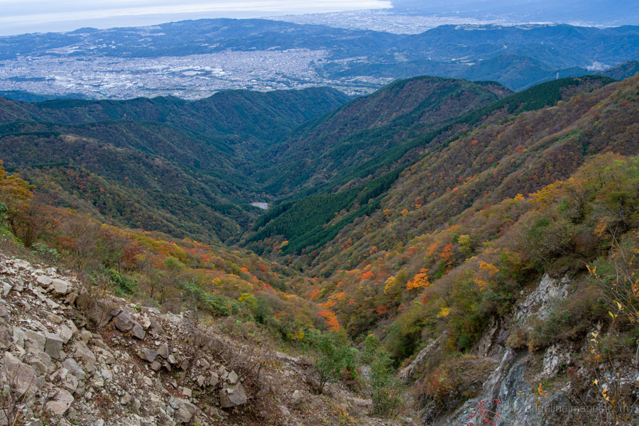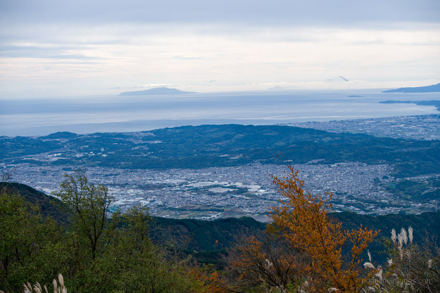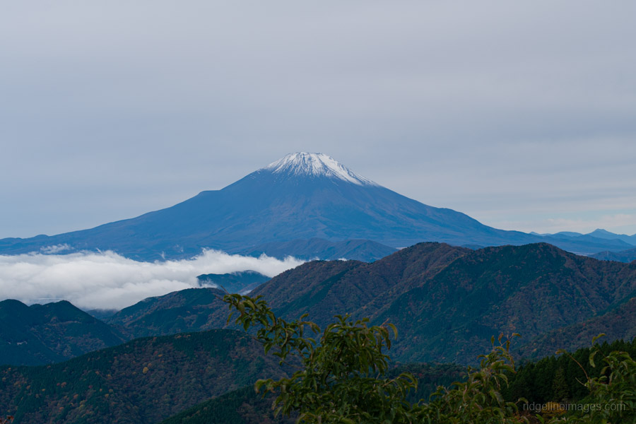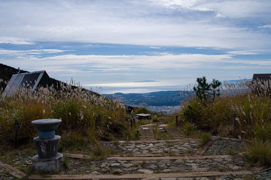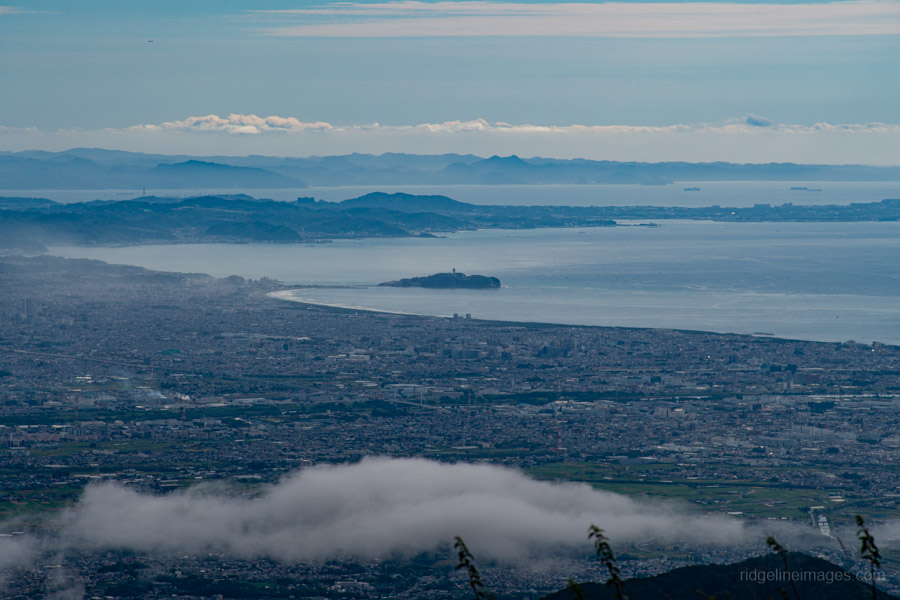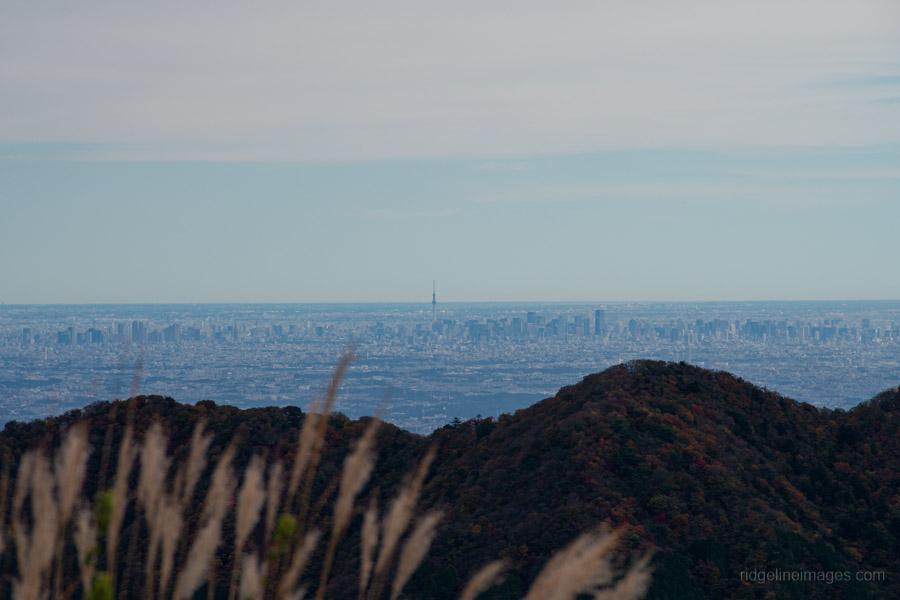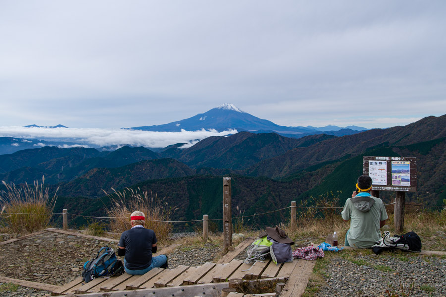 As you gain elevation, Mt. Oyama gradually comes into view behind you, and about an hour after leaving the bus stop, you’ll reach Mt. Ninoto 二ノ塔, the first peak along the main ridge and the first spot where Mt. Fuji makes an appearance. There are benches here, making it a good place to rest and shed a layer. Even better views, however, await at neighbouring Mt. Sannoto 三ノ塔, 1,205 m, about a 10–minute walk from Mt. Ninoto – along yet another stretch of stairway hell. The summit of Mt. Sannoto was so clear that day I could make out not only Tokyo Skytree but also Izu Oshima and even the faint silhouette of tiny Toshima.