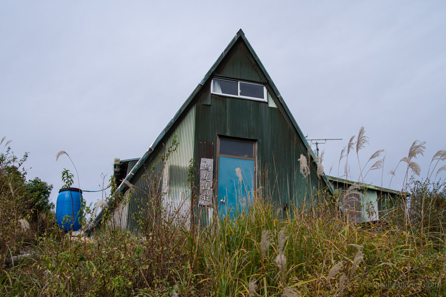 Next up is a steep descent to Mt. Karasuo 鳥尾山 (1,136 m), recognisable by its triangular-roofed hut, which has recently ceased operations. This section also features the first of two fixed-chain areas along the ridge, followed by a short climb back up to the hut. The summit here is spacious and dotted with benches, making it an excellent spot to rest and take in the views.