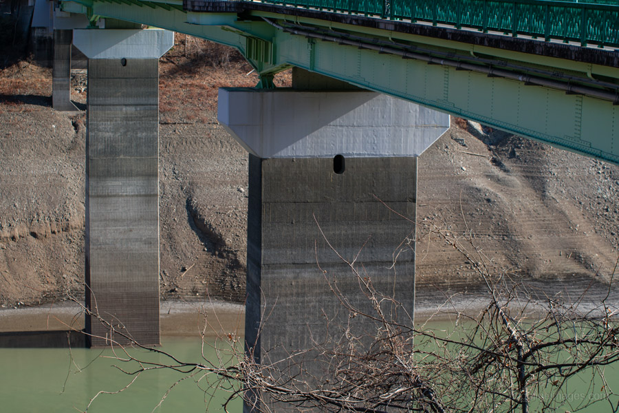 Miyama Bridge concrete pylon, Lake Okutama, February 2016.