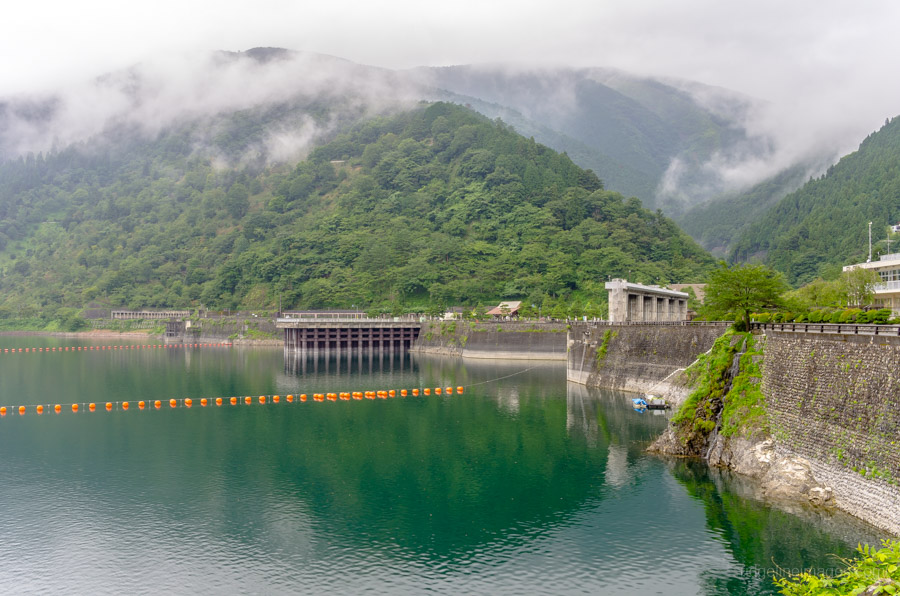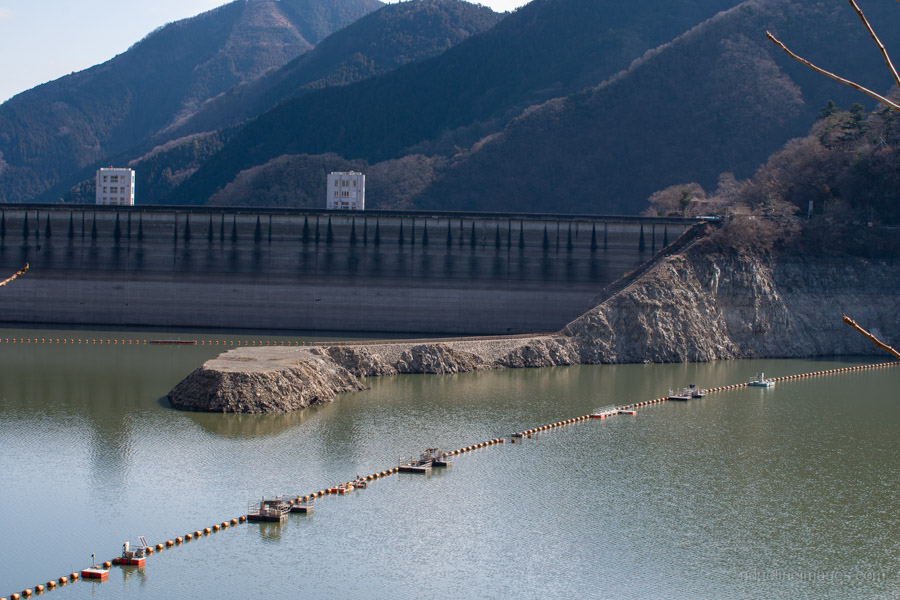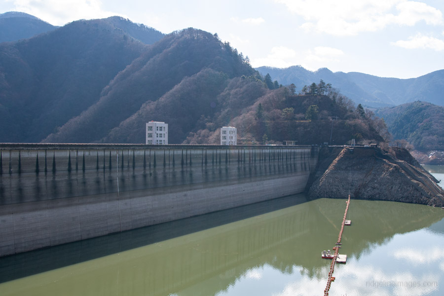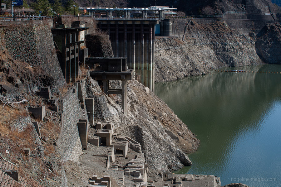 A return bus ride brought me to Ogouchi Dam itself. Comparing the scene with photographs I took in August 2014 reveals a marked change. An area that now resembles the eroded remains of an ancient settlement is, in fact, the former quarry site from which much of the 1.68 million cubic metres of concrete used in the dam’s construction was produced.