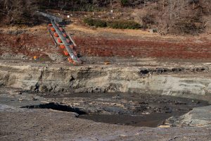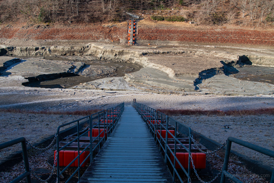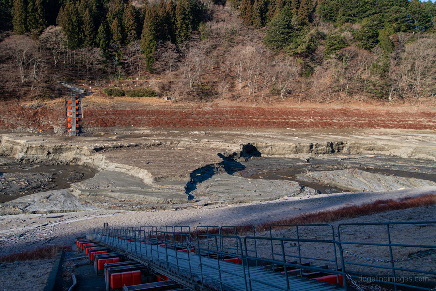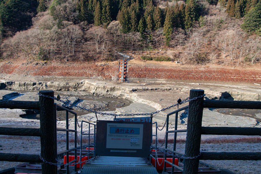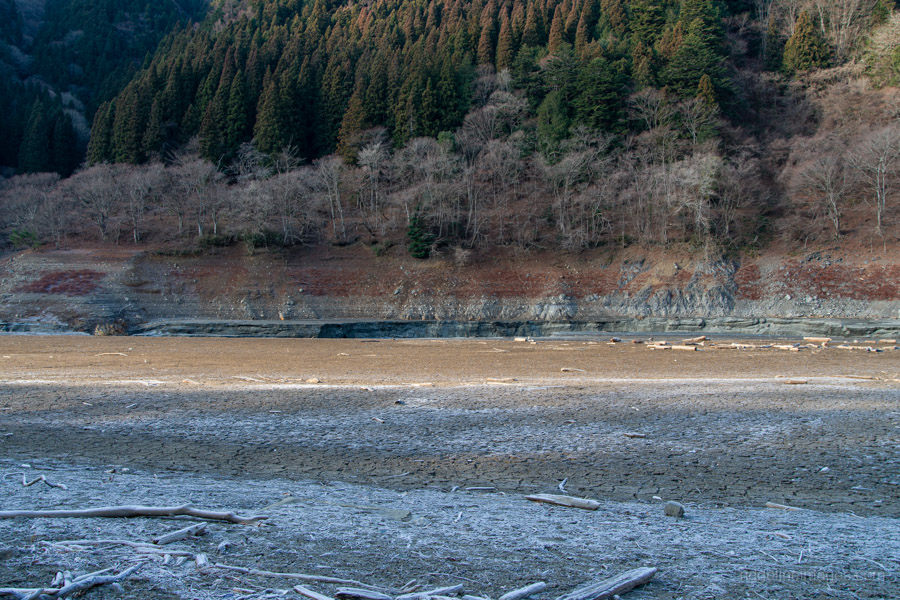 Cake-dry lake bed of Lake Okutama at Tozura.